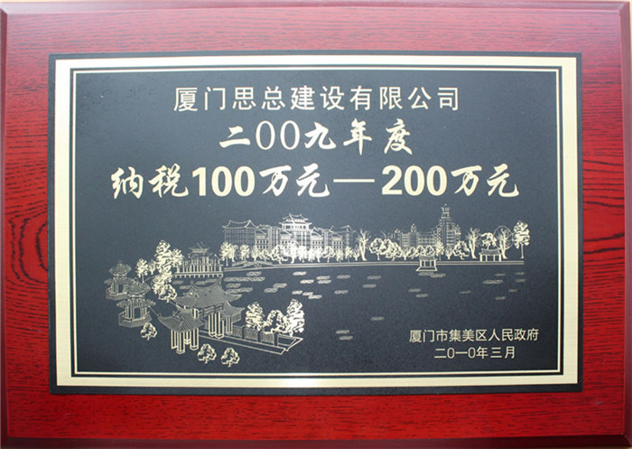 2009年集美區納稅100萬(wàn)元-200萬(wàn)元