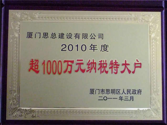 2010年度超1000萬(wàn)元納稅特大戶(hù)