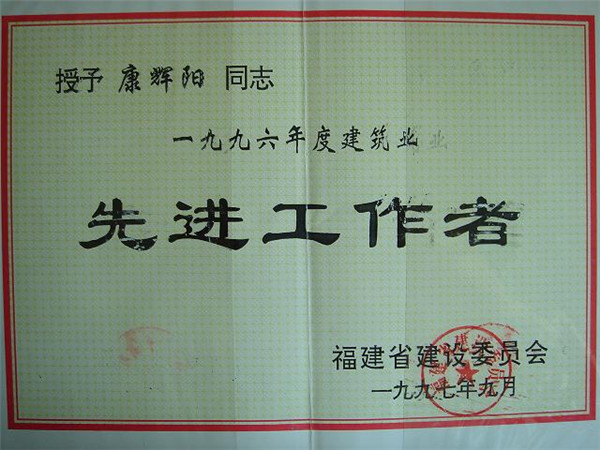 康輝陽(yáng)同志1996年度福建省建筑業(yè)先進(jìn)工作者