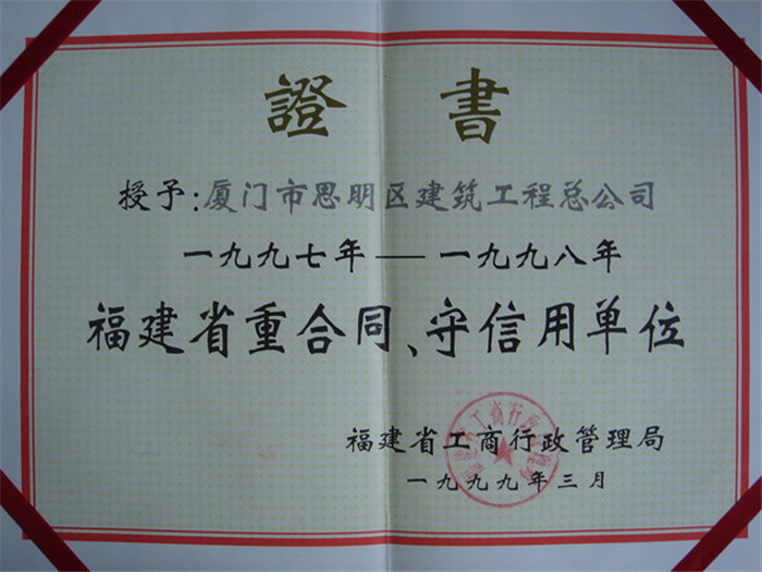 1997-1998廈門(mén)市重合同守信用企業(yè)