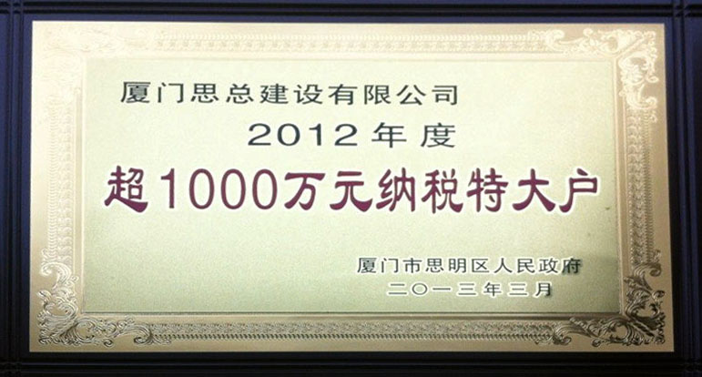 2012年度超1000萬(wàn)元納稅特大戶(hù)