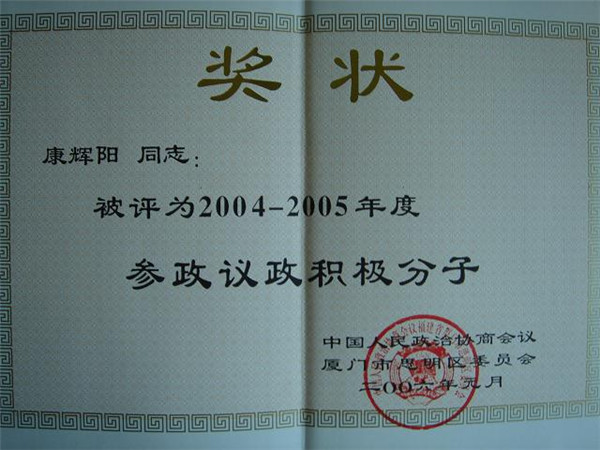 康輝陽(yáng)同志2004-2005年度參政議政積極分子