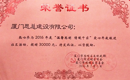 據悉,“溫馨思明·情暖千家”愛(ài)心年夜飯進(jìn)社區活動(dòng)自開(kāi)展以來(lái)頗獲支持,來(lái)自社會(huì )各界的愛(ài)心人士踴躍參與。我司作為思明區的一員,一直以“根植思明,反哺思明”為己任,多年來(lái)積極投身社會(huì )慈善事業(yè),繼承和發(fā)揚“積德行善、扶貧濟困”的中華傳統美德,為思明區統一戰線(xiàn)凝神聚力,積極承擔建設“美麗廈門(mén)”的社會(huì )之責。
