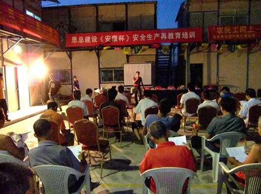 圖為“安全生產(chǎn)月”活動(dòng)期間對農民工進(jìn)行集中培訓