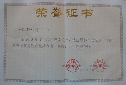 我司參加廈門(mén)市2013“安康杯”競賽活動(dòng)