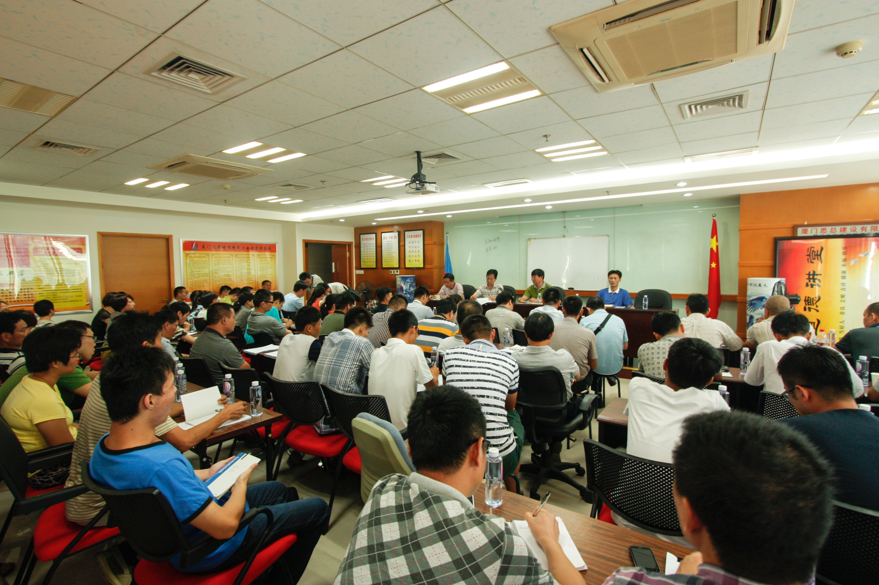 為貫徹落實(shí)省住房和城鄉建設廳《關(guān)于開(kāi)展工程質(zhì)量和隊伍素質(zhì)“雙提升”行動(dòng)的通知》(閩建綜【2014】2號文)要求,廈門(mén)思總建設有限公司于2014年8月2日上午在企業(yè)總部辦公樓召開(kāi)工程質(zhì)量、隊伍素質(zhì)“雙提升”行動(dòng)專(zhuān)項會(huì )議,公司全體人員包括省內外各分公司、在建項目負責人、現場(chǎng)技術(shù)、質(zhì)量、安全施工管理人員共100多人參加本次會(huì )議。