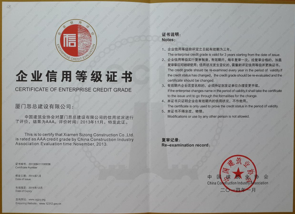 2014全國建筑業(yè)企業(yè)信用評價(jià)3A