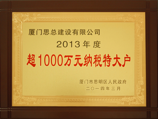 2013年度超1000萬(wàn)元納稅特大戶(hù)-思明區
