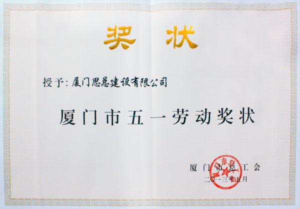 2013廈門(mén)市五一勞動(dòng)獎狀