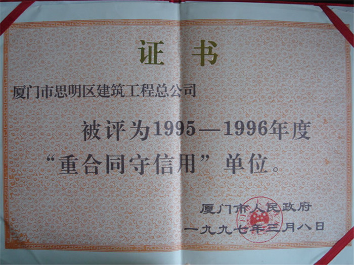 1995-1996廈門(mén)市重合同守信用企業(yè)